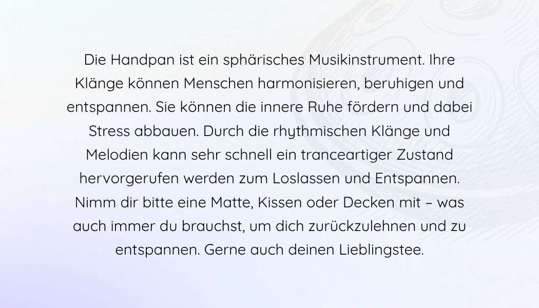 Kurse zur Entspannung mit meditativen und dynamischen Klängen mit dem Handpan